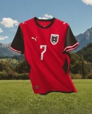 Der Österreich-Schriftzug im Kragen der Shirts und das symbolische Adler-Wappen auf der linken sowie das Puma-Logo auf der rechten Brustseite vervollständigt das Design beider Trikots. Lasst uns gemeinsam unsere Teams in diesen atemberaubenden Heim- und Auswärtstrikots anfeuern!